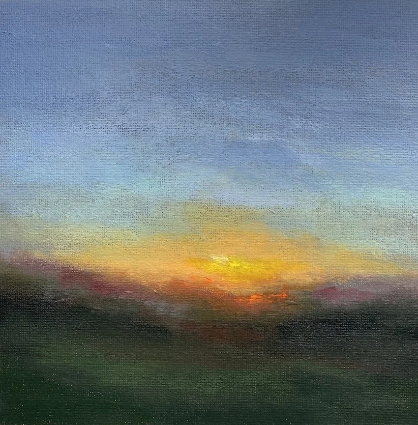 I truly loved painting this spontaneous sunset, capturing the last warm glow of the day as it gently disappeared into the approaching night. This time, I’ve intentionally added a deliberate shape of the sun, subtly hiding behind the beautiful, vibrant orange light.