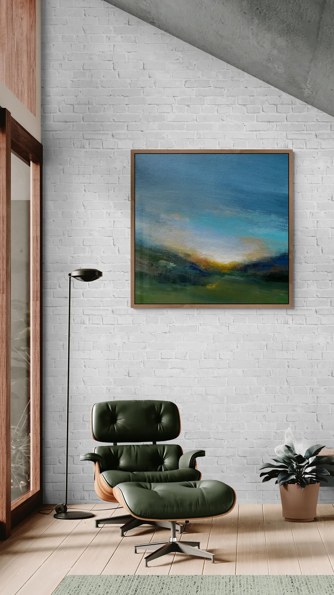 This painting, ‘Rolling Shadows’ is beautiful and at a generous size with richly layered textures and deep, dramatic shadows. It features a distinctive and captivating use of colour, evident in the harmonious blend of warm ochres, vibrant Prussian blue, earthy olive green, and one of my personal favourites, Hooker’s green deep, a darker shade of green that some might almost perceive as black.