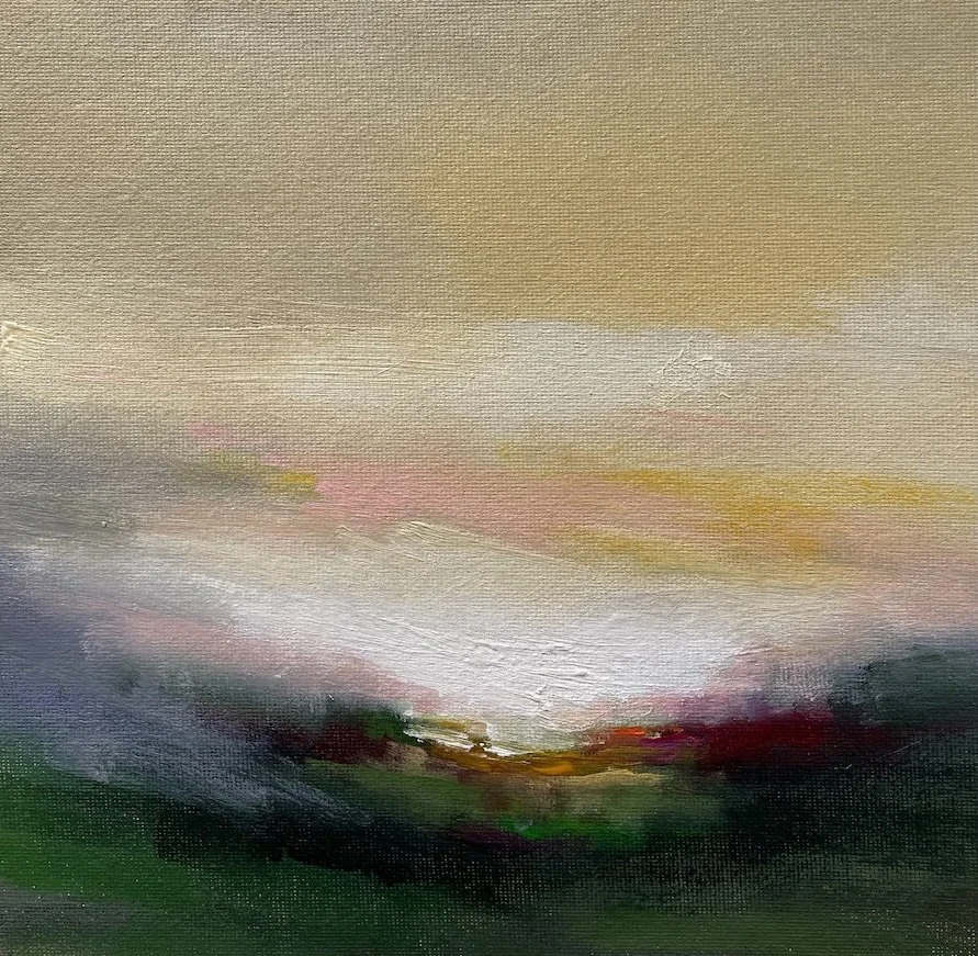 The ochre tones in the sky were carefully blended and layered to create a strong sense of depth and warmth, whilst the addition of pink seamlessly pulls the entire piece together in a harmonious way.
