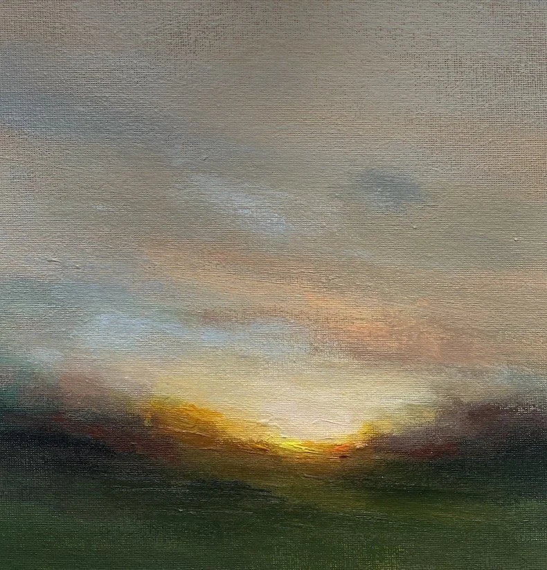 The sky is a bit more blended than my small paintings usually are as they tend to be more abstract with a lot more brushstrokes. I love the gorgeous warm tones on the horizon with the finer detail of lemon yellow and the smallest touch of orange just showing through.