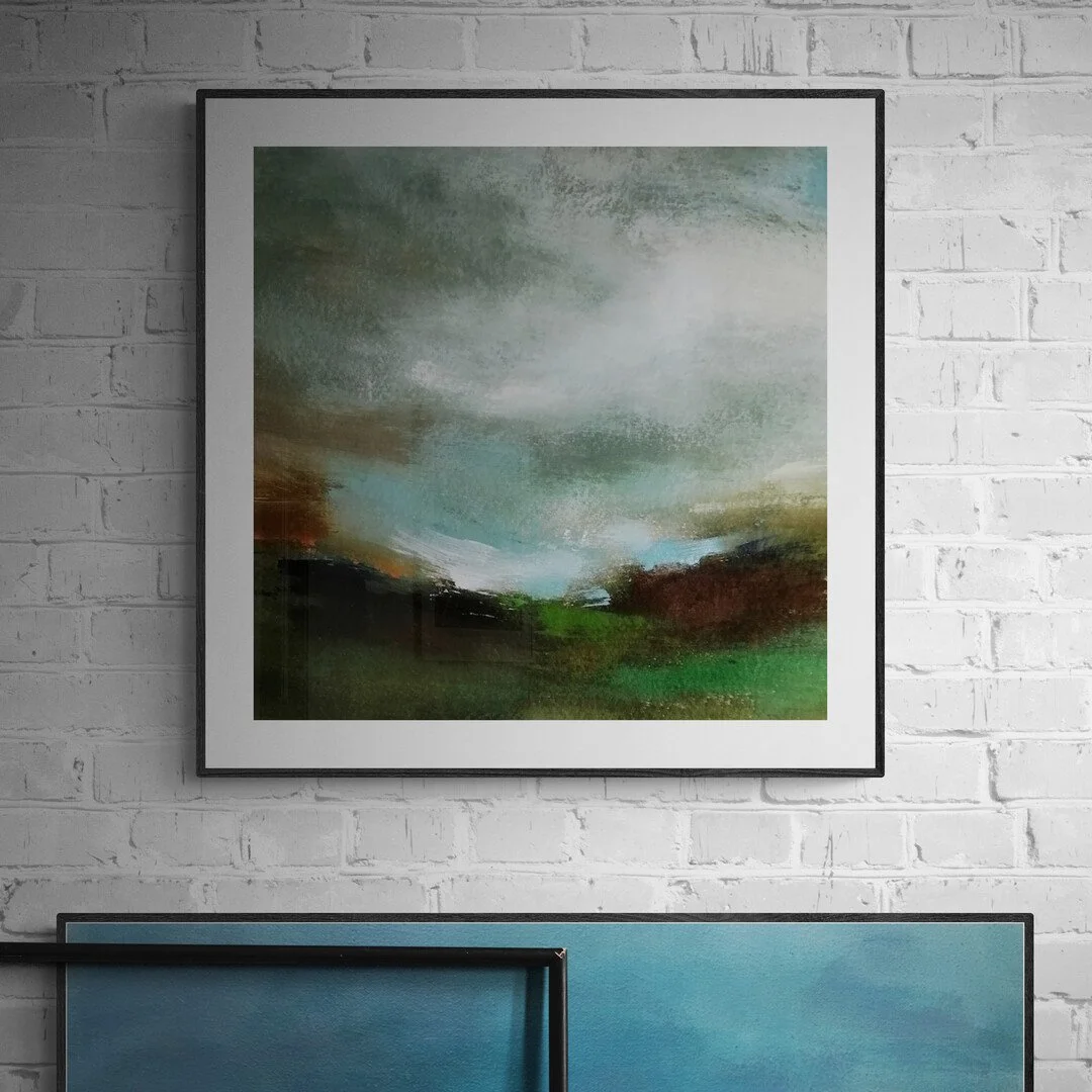 It’s always nice that each painting is so different so no two are ever the same, they’re all unique. The sky is quite blended showing all the colours I used with the impression of clouds with the touch of white which I hope looks like the light peeping through the clouds. My inspiration was the South Downs as if looking out to miles and miles of beautiful countryside. The South Downs is always a stunning source of inspiration having grown up close to both the South Downs and the North Downs.