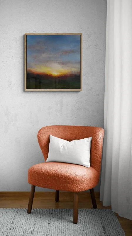 I love painting sunsets and sunrises and this piece is no exception. Each one is so wonderfully different showcasing a breathtaking range of colours, from vivid yellows to the softest, most delicate peachy tones. These beautiful gradations of colour gently ascend into the vast sky creating a truly mesmerizing effect.