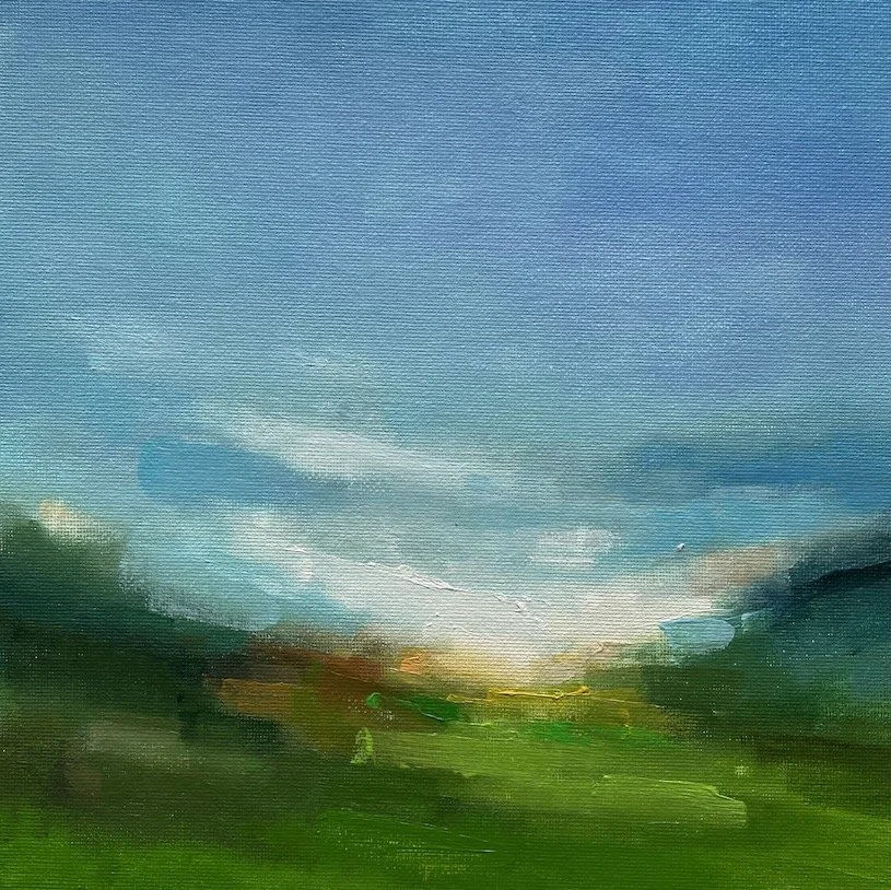 All these paintings are very affordable and will suit any interior space as they are supplied with a white mount ready to be framed by your local framer in a moulding of your choice. They are all painted in a semi abstract style in acrylic on canvas or paper. They are evocative landscapes with a few seascapes too, painted with a variation of colour and tone and a fluidity of movement to create the light and atmosphere.